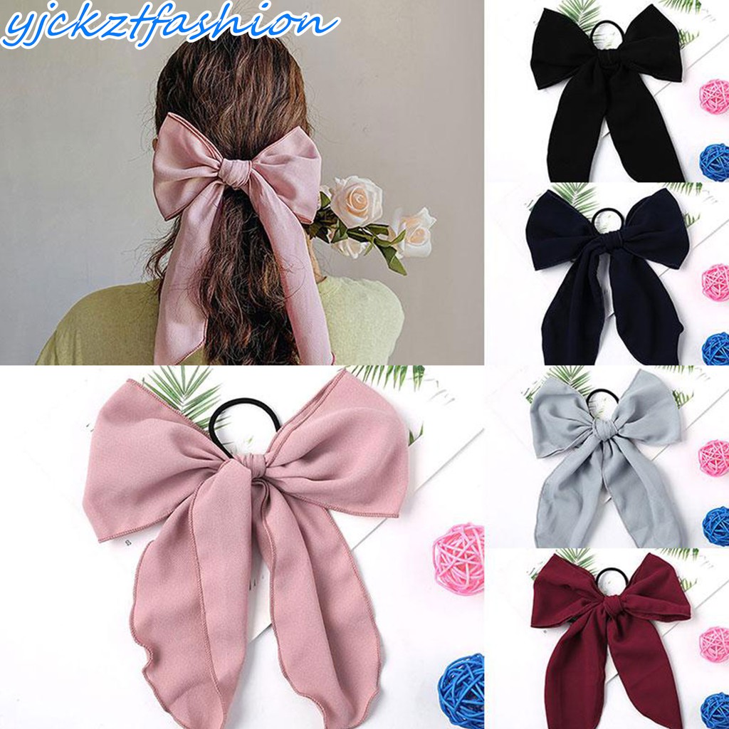 YJCKZTFASHION Sweet Chiffon Big Ribbon Ribbon Bow Hair Tie Shopee
